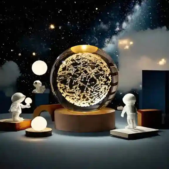 Explore the beauty of the universe with the BABBAK'S LTD 3D Solar System Crystal Ball with LED Light. This elegant glass sphere features a detailed 3D laser-engraved solar system model illuminated by a soft LED glow.