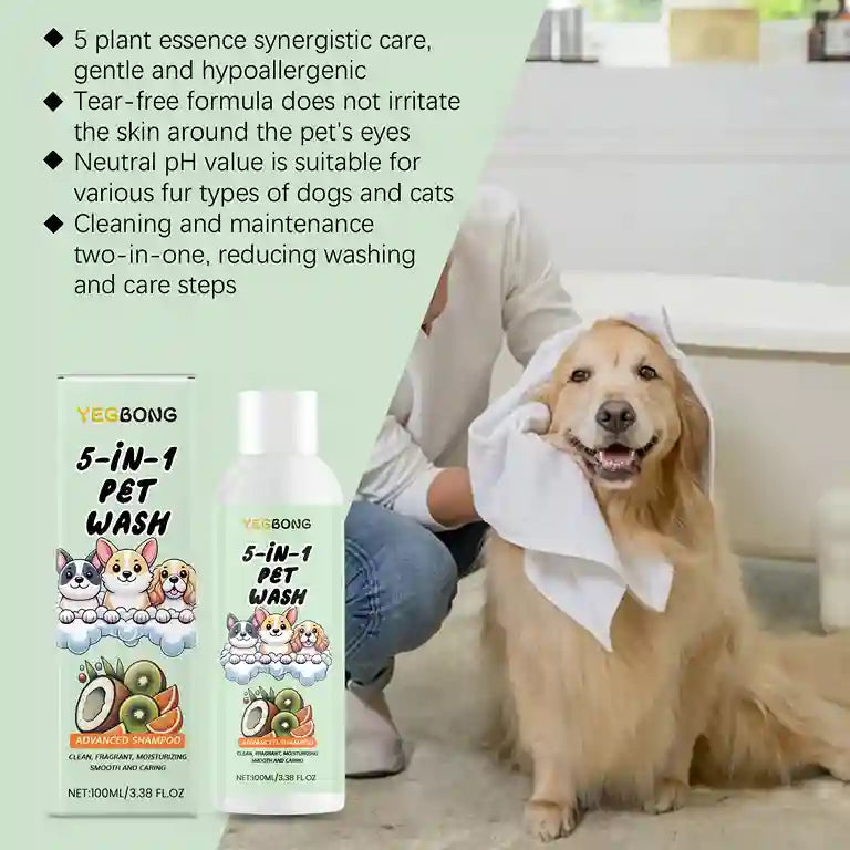 Its 5‑in‑1 formula cleans dirt, conditions fur, detangles knots, controls odor, and moisturizes skin — leaving your pet’s coat shiny, soft, and healthy. Perfect for pets with sensitive skin, it is free from harsh chemicals and safe for regular use.
