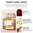 - Romantic floral fragrance with peach, bergamot, and rose notes