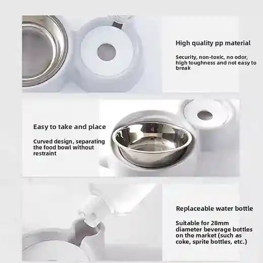 Ideal for small to medium pets, this feeder is easy to clean, spill‑resistant, and perfect for home use. No electricity is required – simply fill the water container and food bowl, and your pet’s mealtime is taken care of.
