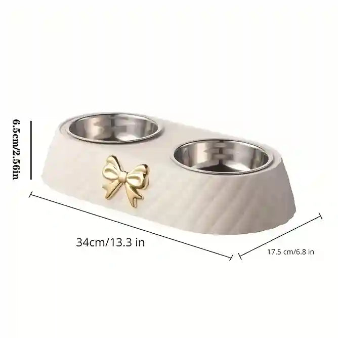 BABBAK'S LTD Bow‑Tie Double Pet Food & Water Bowl – Stainless Steel & PP Base for Dogs & Cats