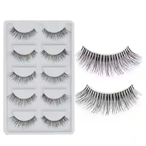 BABBAK'S LTD Long Sparse Cross False Eyelashes – 5 Pairs Natural Black Handmade Lashes