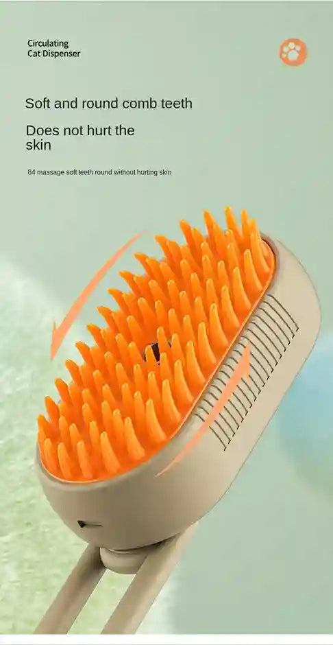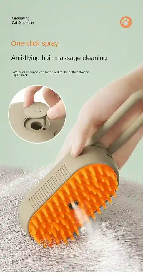 The built‑in spray function allows you to lightly mist water or conditioner onto your pet’s fur for smoother combing and reduced static. The ergonomic ABS handle ensures a comfortable grip for long grooming sessions.