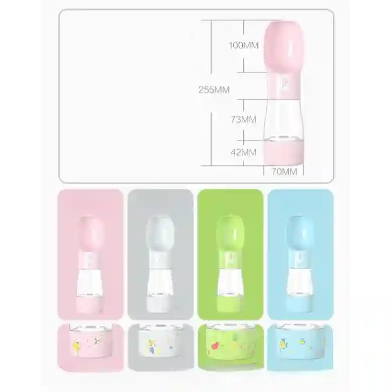 This multi‑functional pet bottle combines a water container and a food compartment in one compact design. The leak‑proof water dispenser ensures fresh hydration for your pet anywhere, while the food storage section keeps treats or kibble secure and clean.