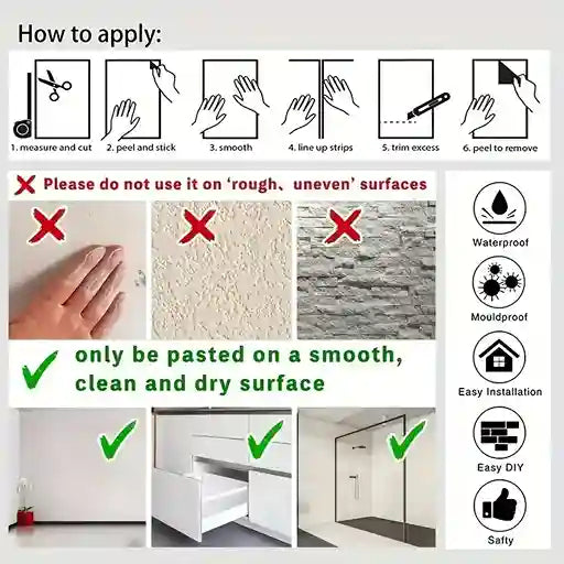 Crafted from eco-friendly, non-toxic durable paper, this peel-and-stick wall sticker is perfect for adding a stylish retro brick effect to your walls, furniture, cabinets, and more. The self-adhesive backing allows for quick installation without tools or messy glue, making it ideal for DIY home renovation projects.