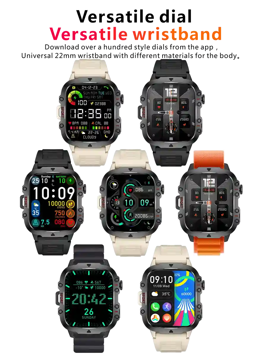 Track your heart rate, blood oxygen, sleep quality, stress levels, and enjoy 100+ sports modes for precise workout monitoring. With up to 14 days of battery life, this watch is your ultimate outdoor and daily fitness companion.